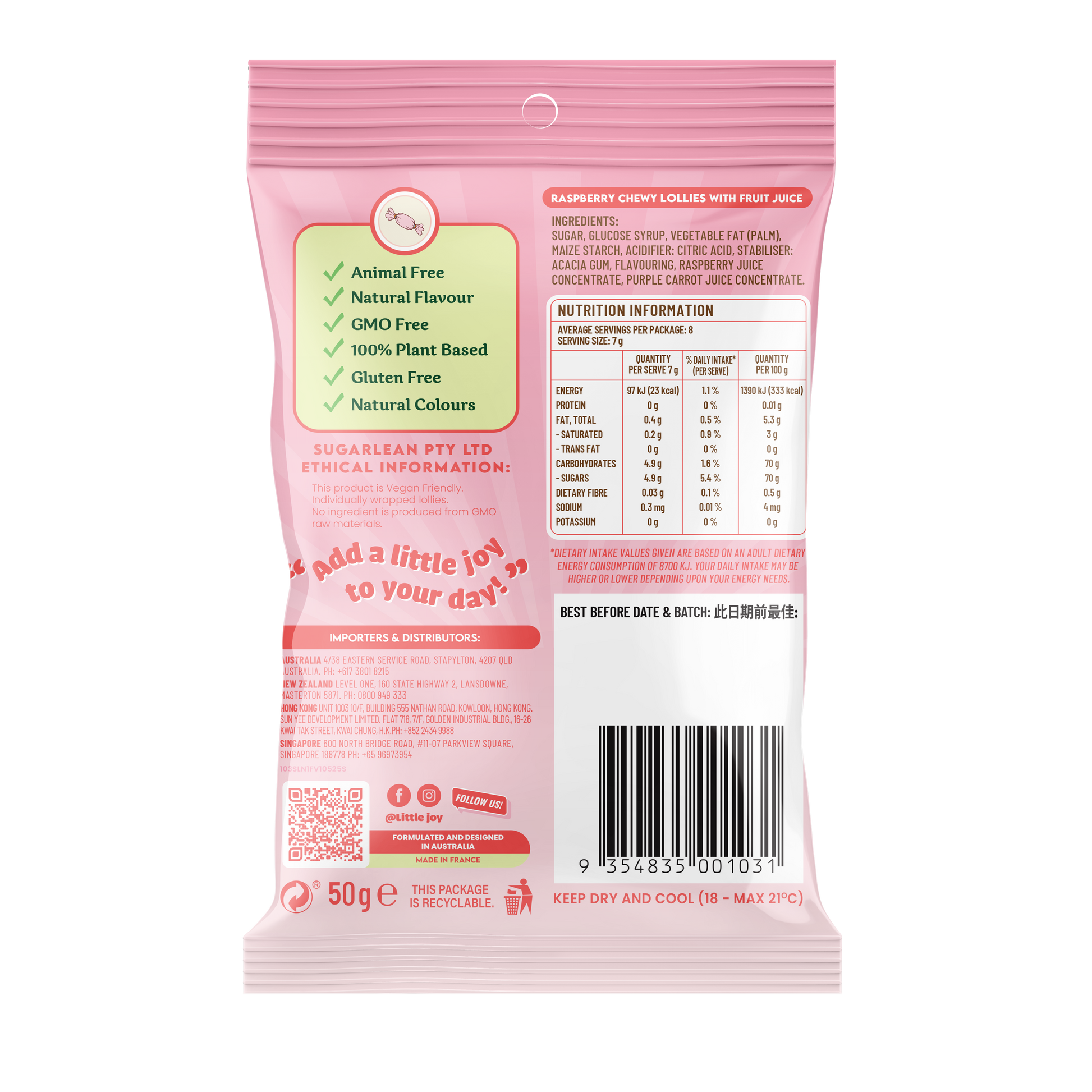 Enjoy real raspberries' bold and juicy flavor in every soft, chewy bite! It offers the perfect balance of sweetness and tang, making them an irresistible treat for any moment.